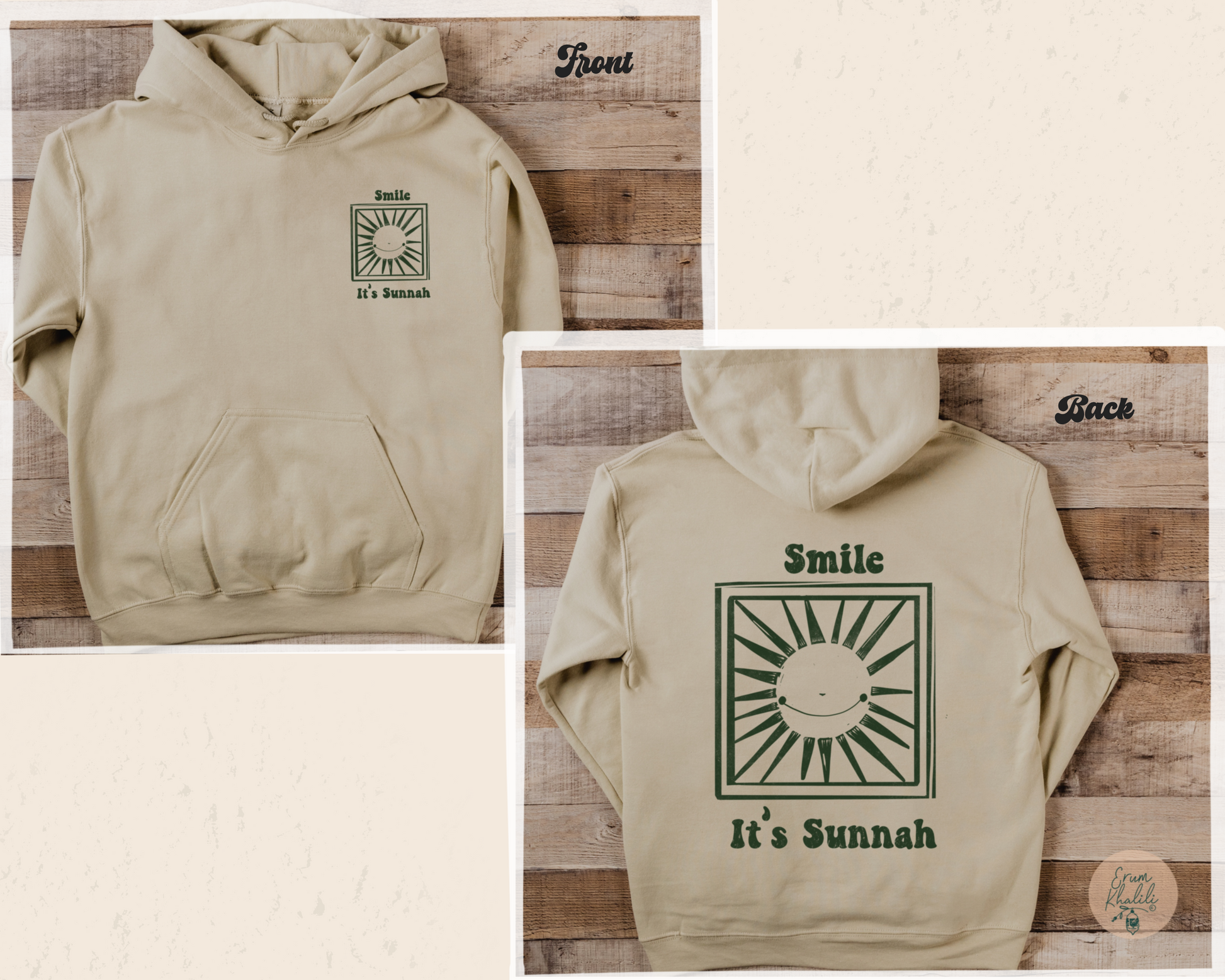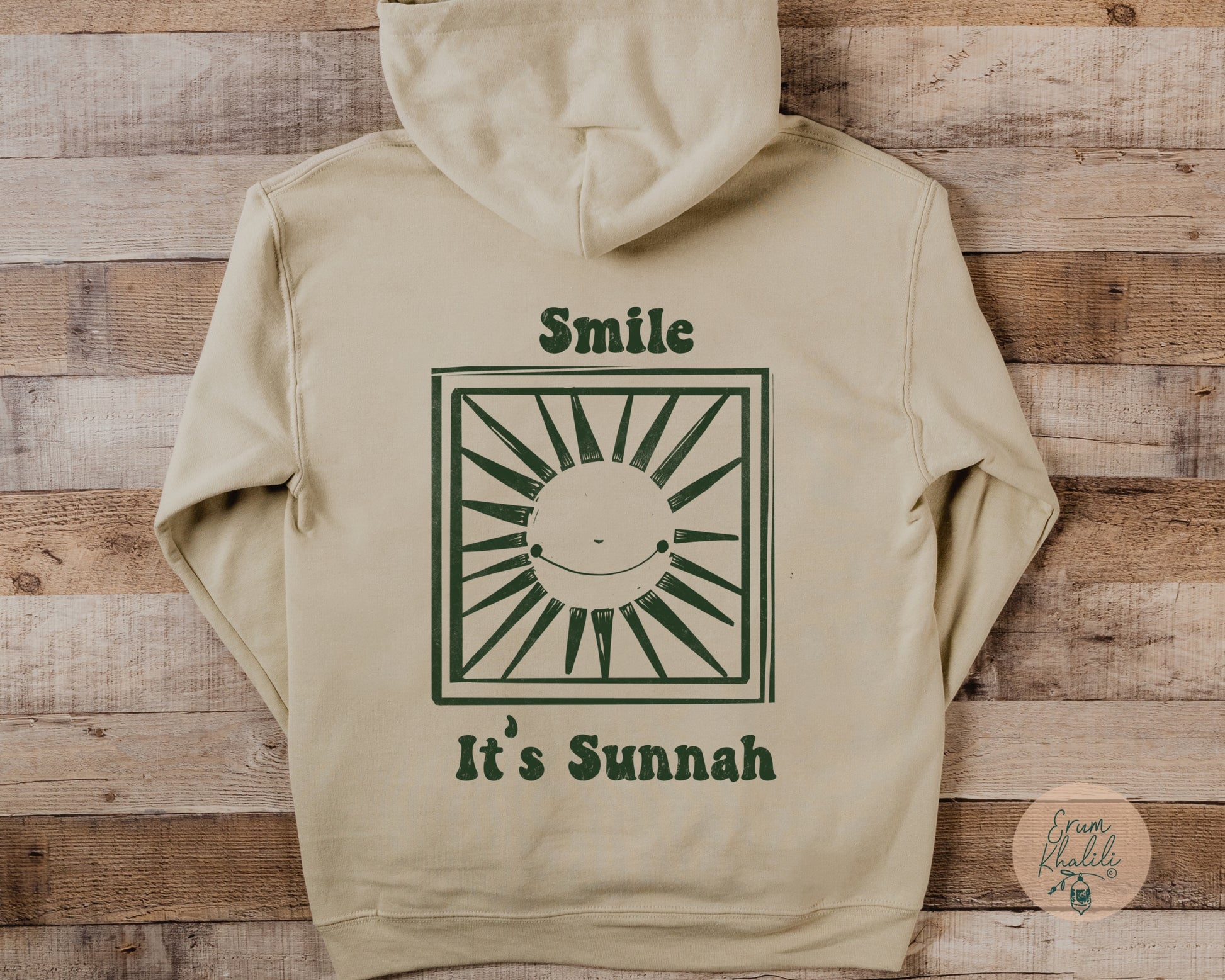 The "Smile: It's Sunnah" collection designed by Erum Khalili is a celebration of positivity and compassion inspired by Islamic teachings. This collection features a range of items designed to spread smiles and encourage the practice of Sunnah by embodying the joyful spirit encouraged by Prophet Muhammad (PBUH).Erum was inspired by retro design and block printing techniques for this piece.
