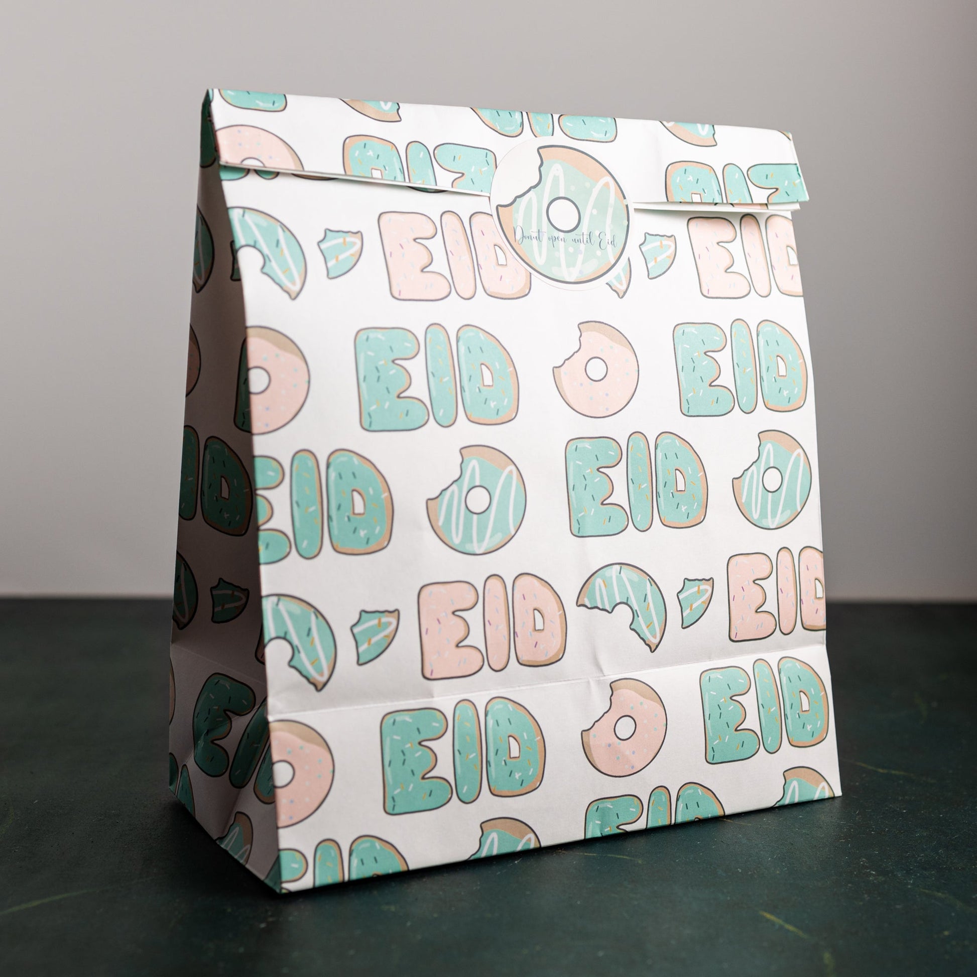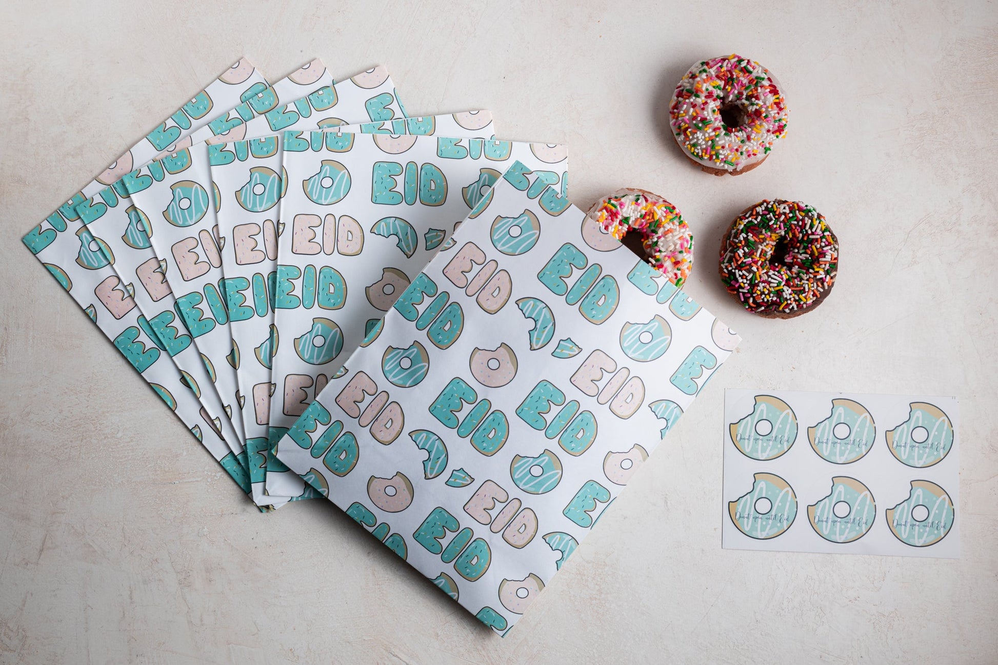 Make your Ramadan and Eid gifting extra special with our donut print treat bags! Perfect for fresh donuts, small surprises, or goodies. Comes with fun “Donut Open Until Eid” stickers.