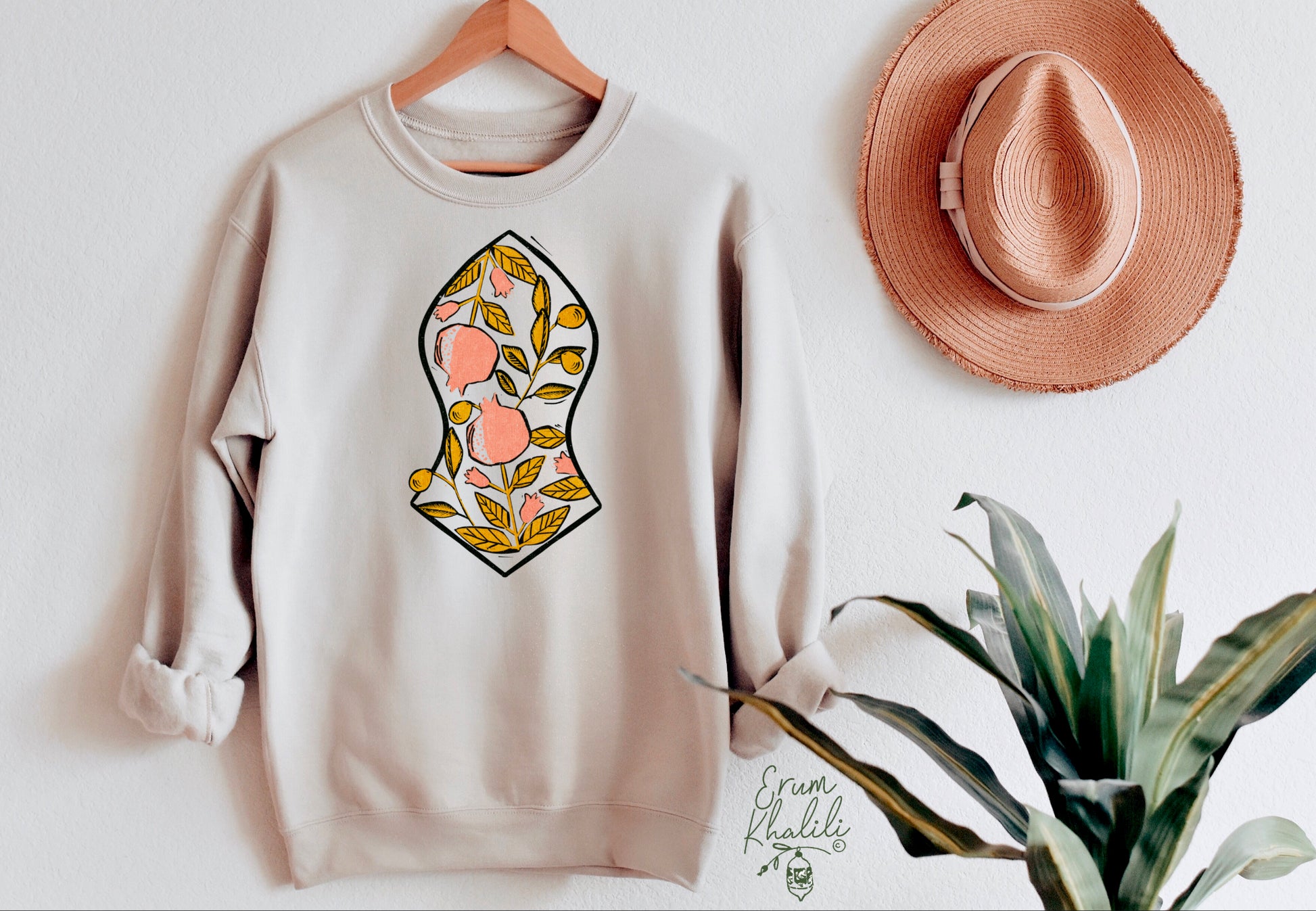 “The Blessed Sandals” collection was designed by Erum Khalili. This piece was inspired by the shape of the prophet Muhammad PBUH’s Sandals. The floral artwork was first etched in a sketchbook with ink then transferred digitally. To see the entire process follow @erumkhalili on instagram.