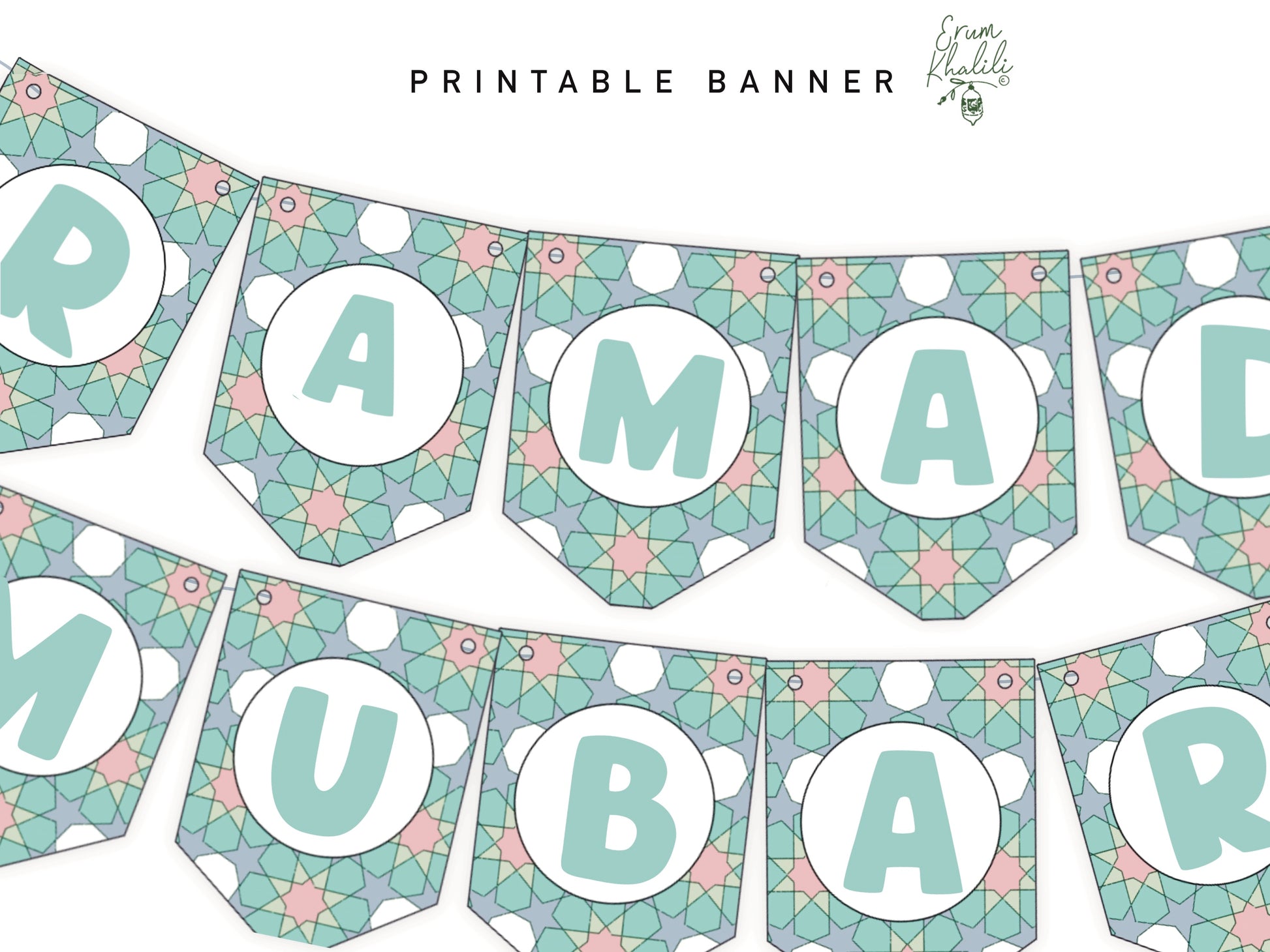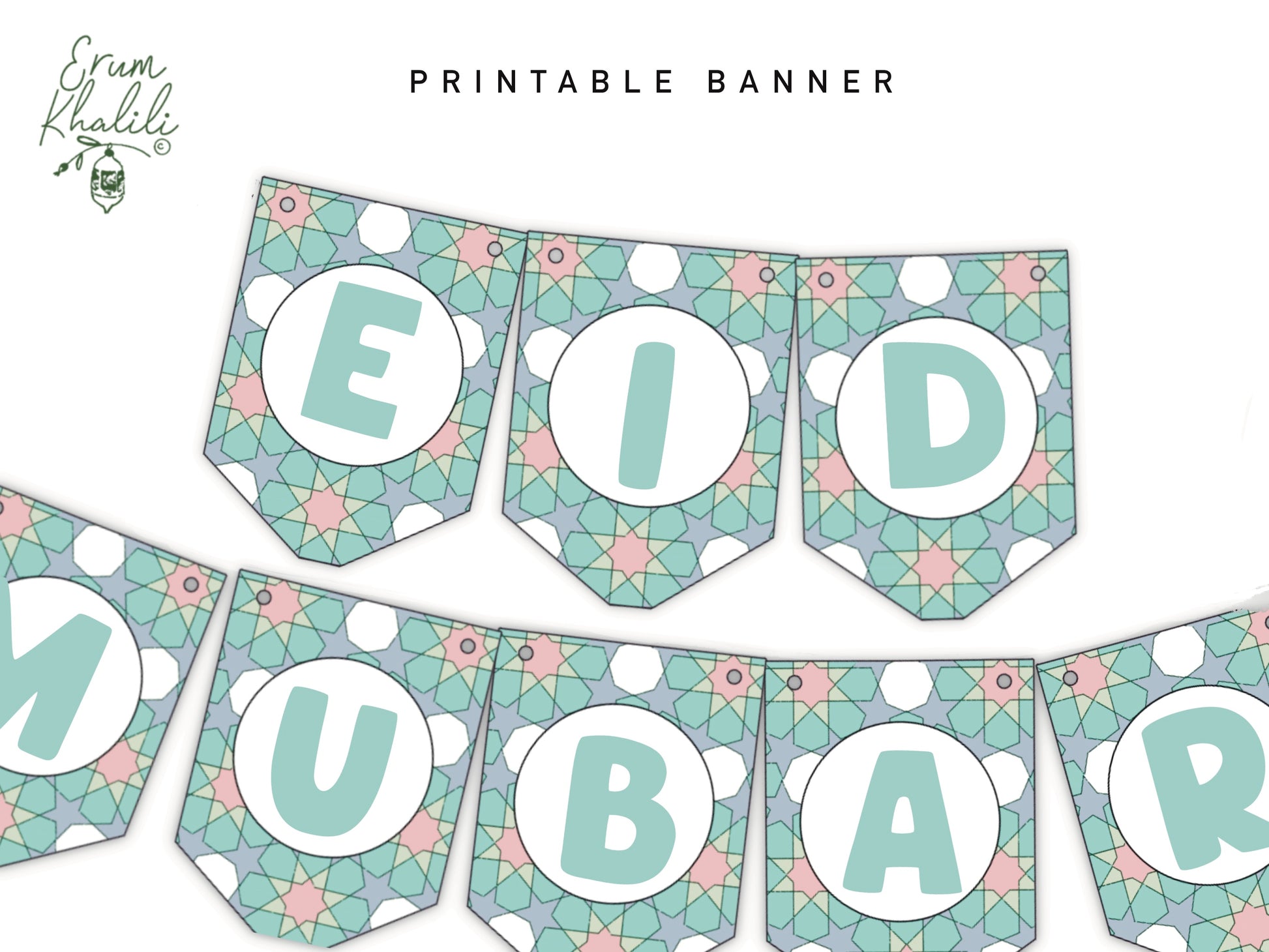 Printable - Ramadan and Eid Dual Purpose Banner - Pastel Geo Print
