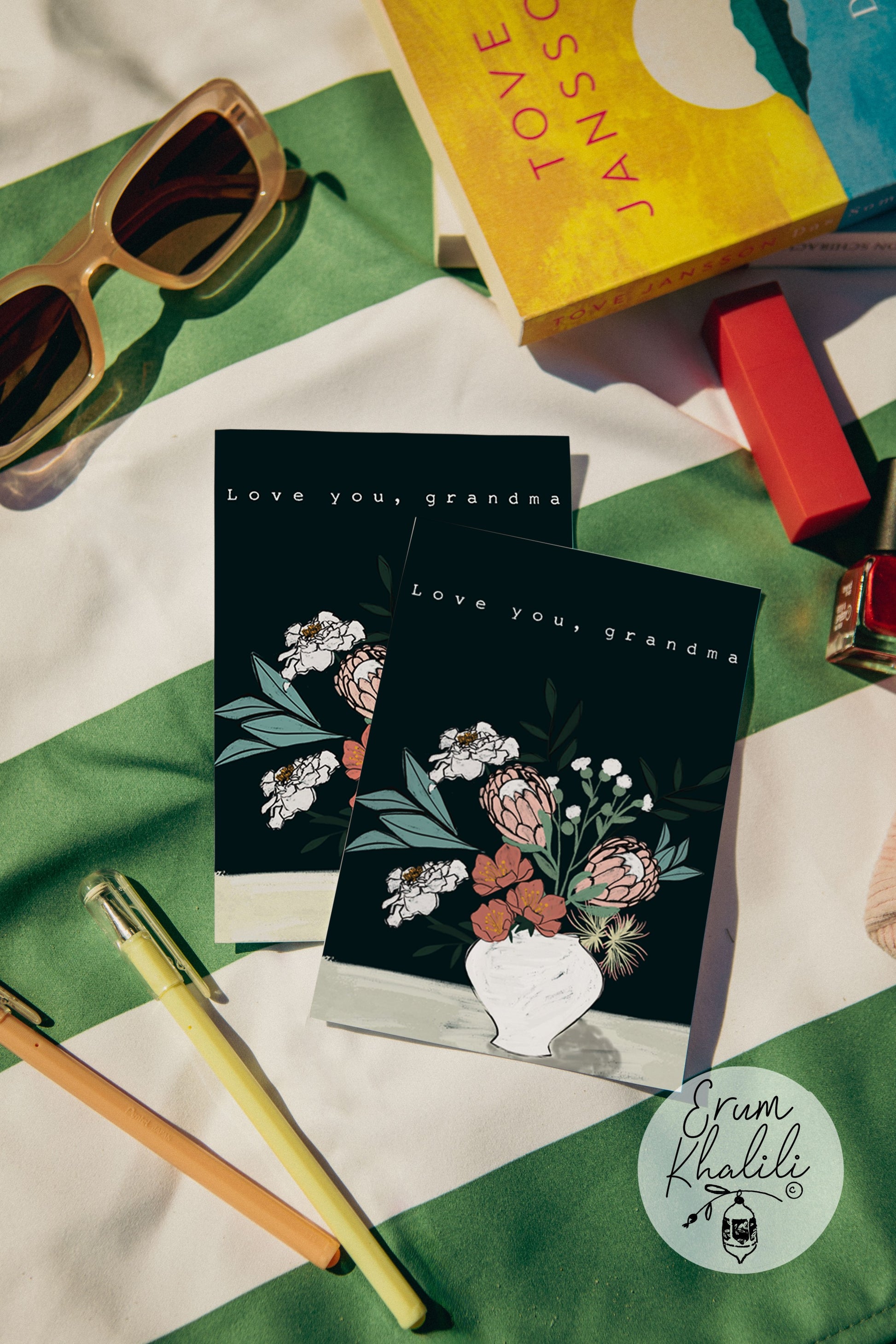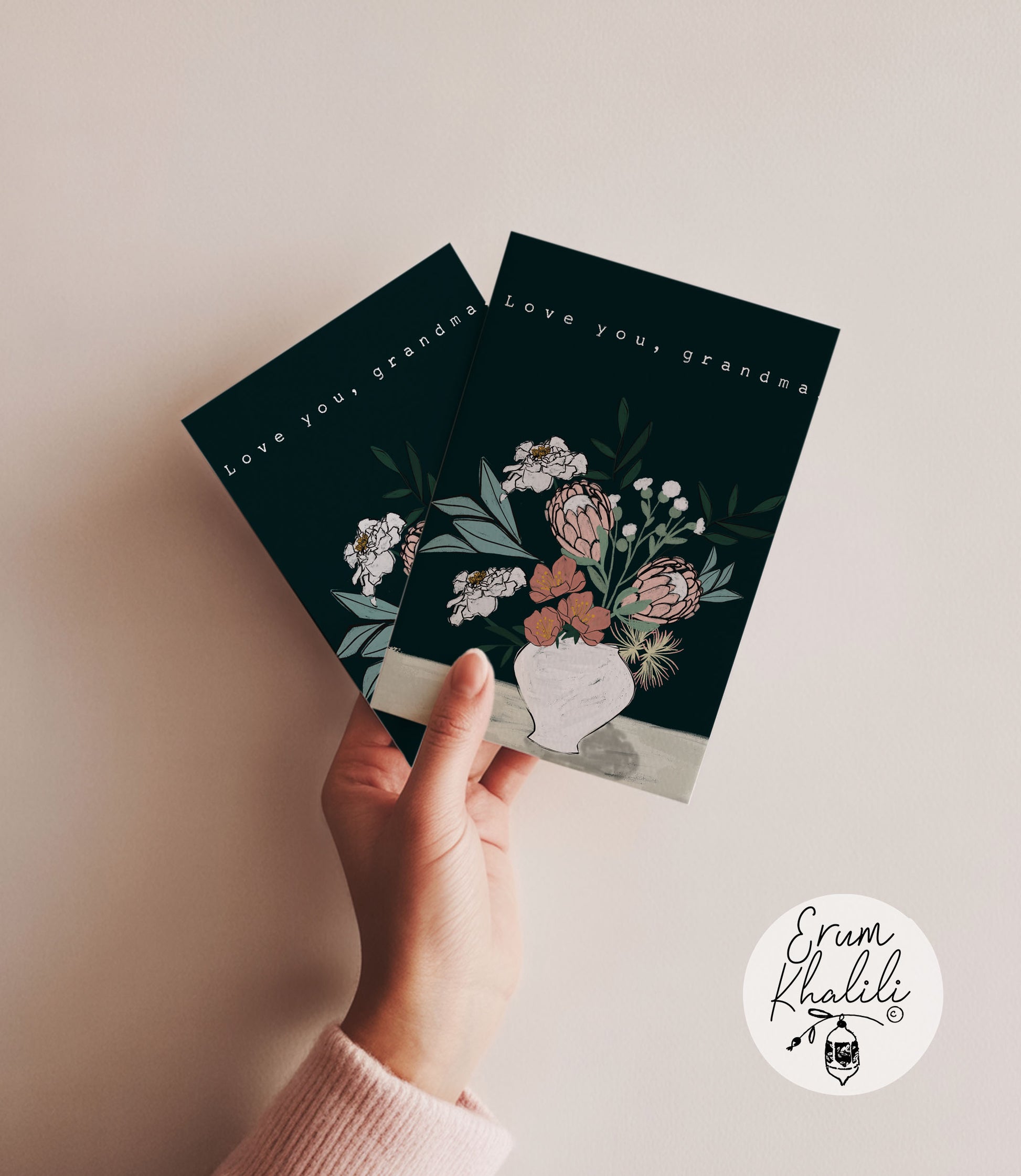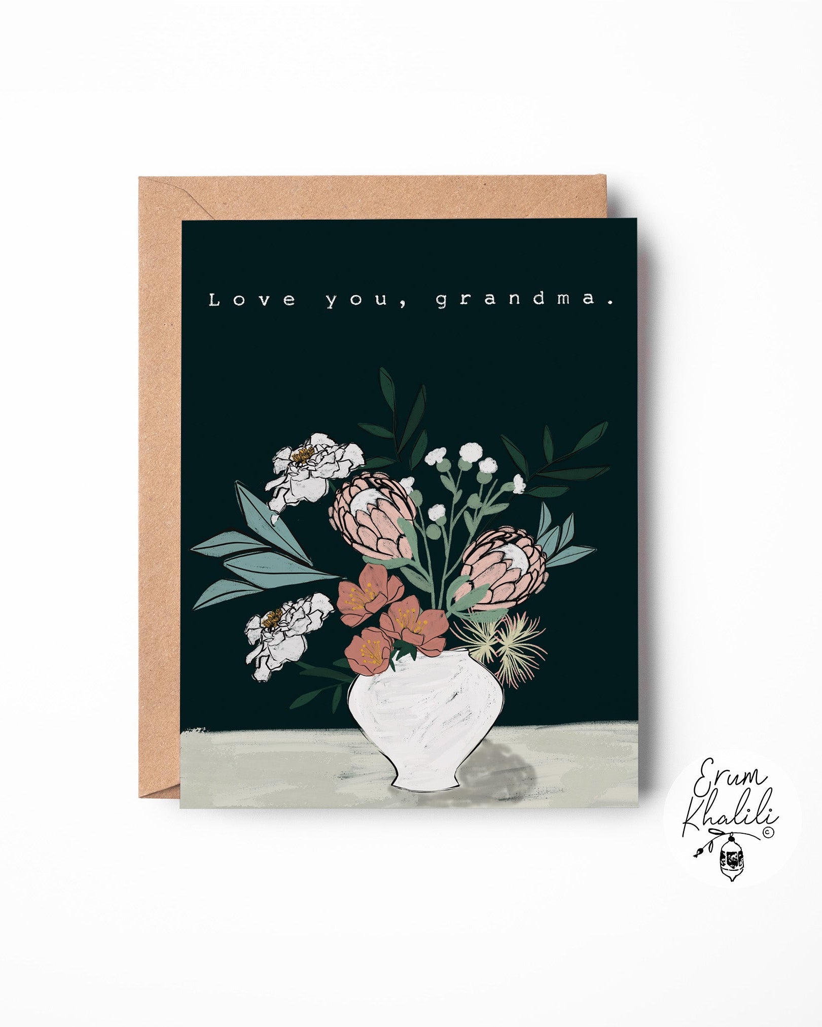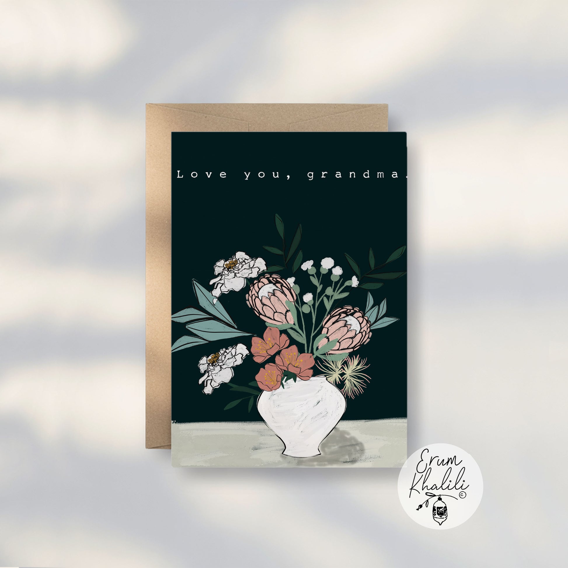 Love You Grandma | Floral Vase Greeting Card | A2 Blank Card