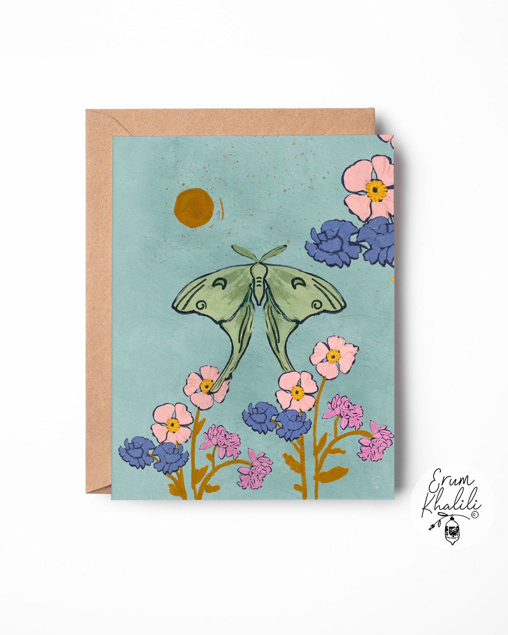 This card features a detailed hand-illustration of a moth, celebrating the quiet beauty of nature. With its minimal design and earthy palette, it’s a versatile everyday card — perfect for thank you notes, birthdays, or just-because messages. A unique addition to any stationery collection for nature lovers.