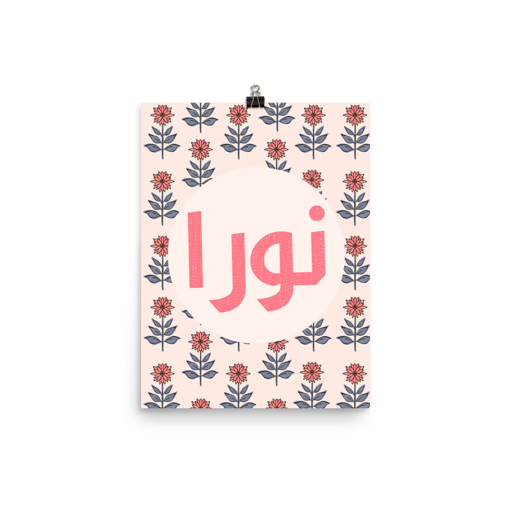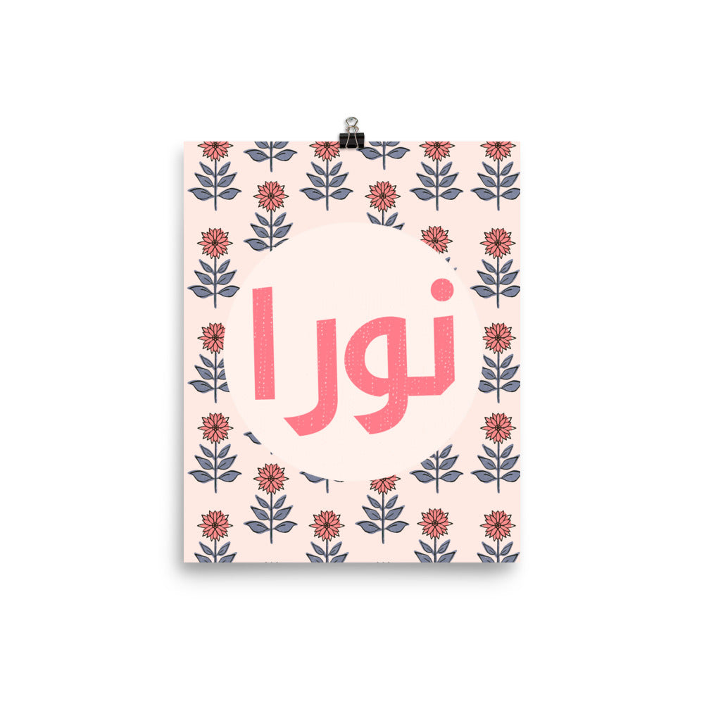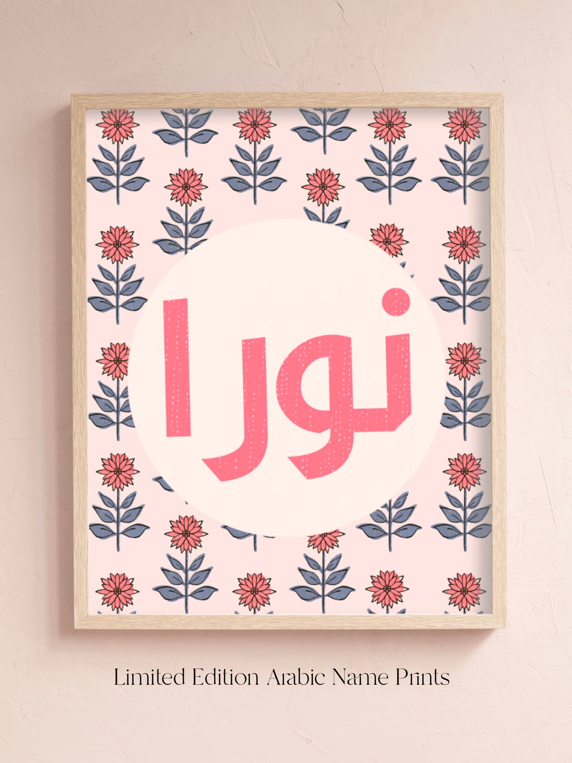 Limited Edition Personalized Arabic Name Art - Block Print Florals