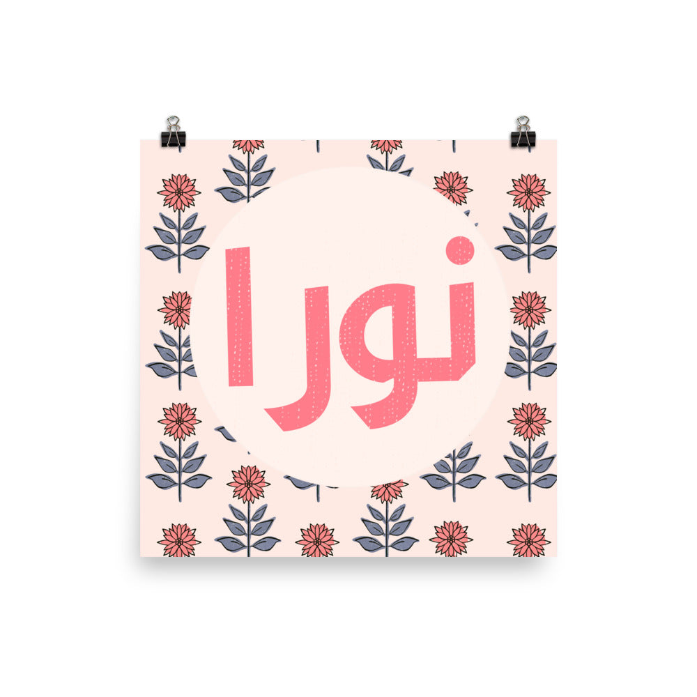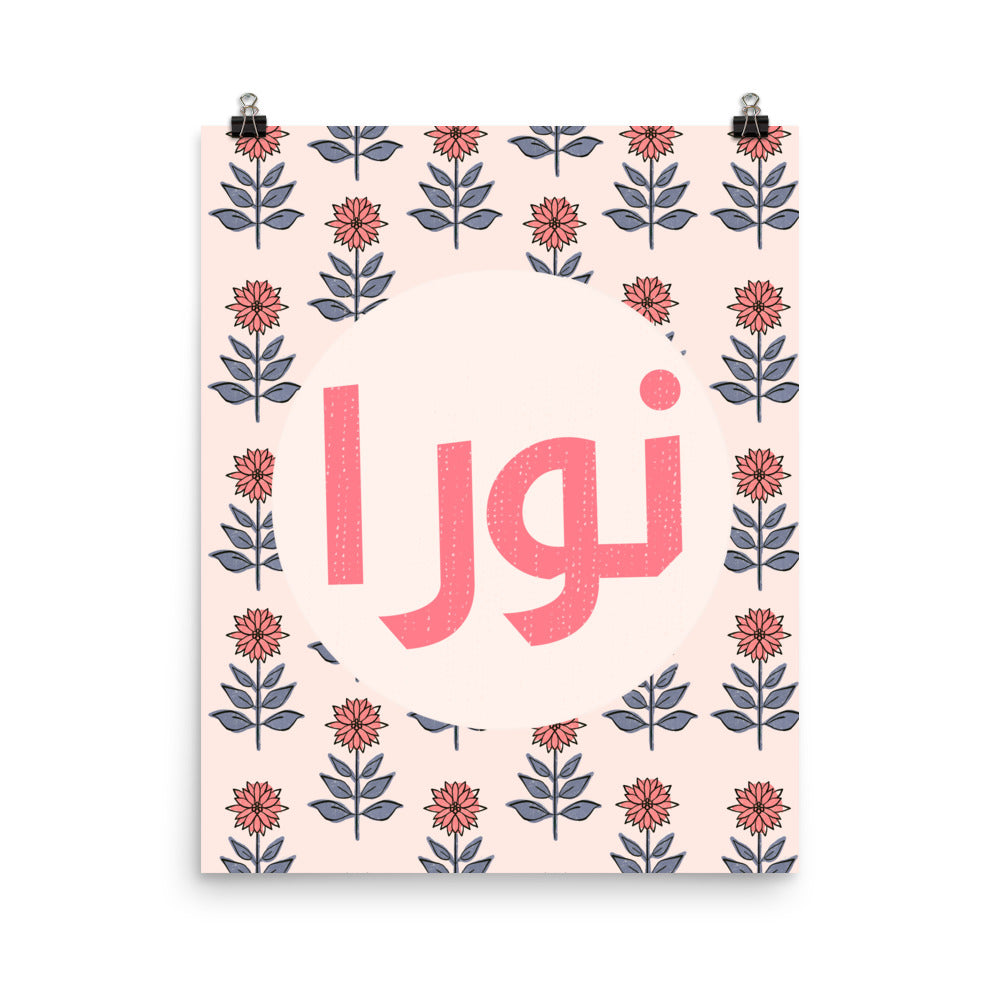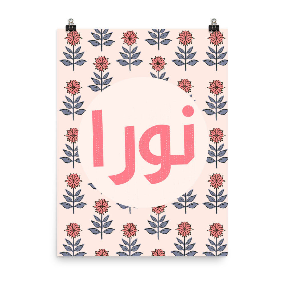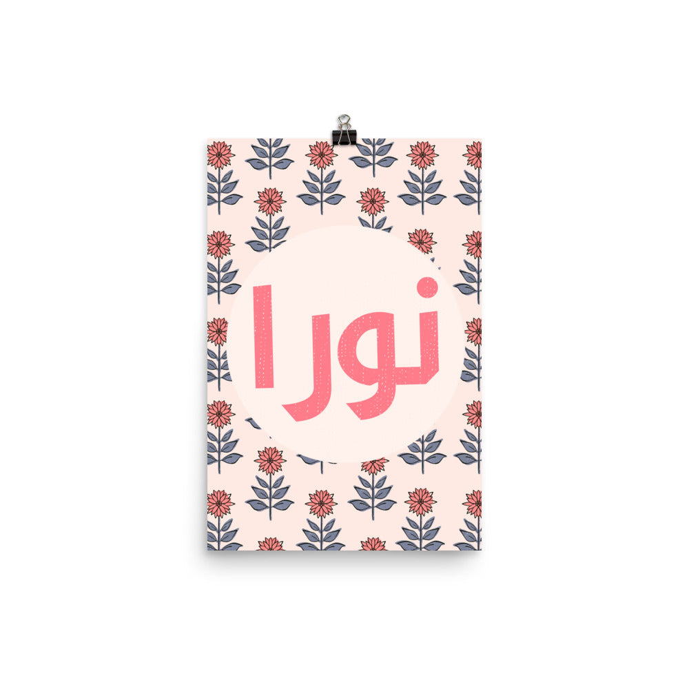 Limited Edition Personalized Arabic Name Art - Block Print Florals