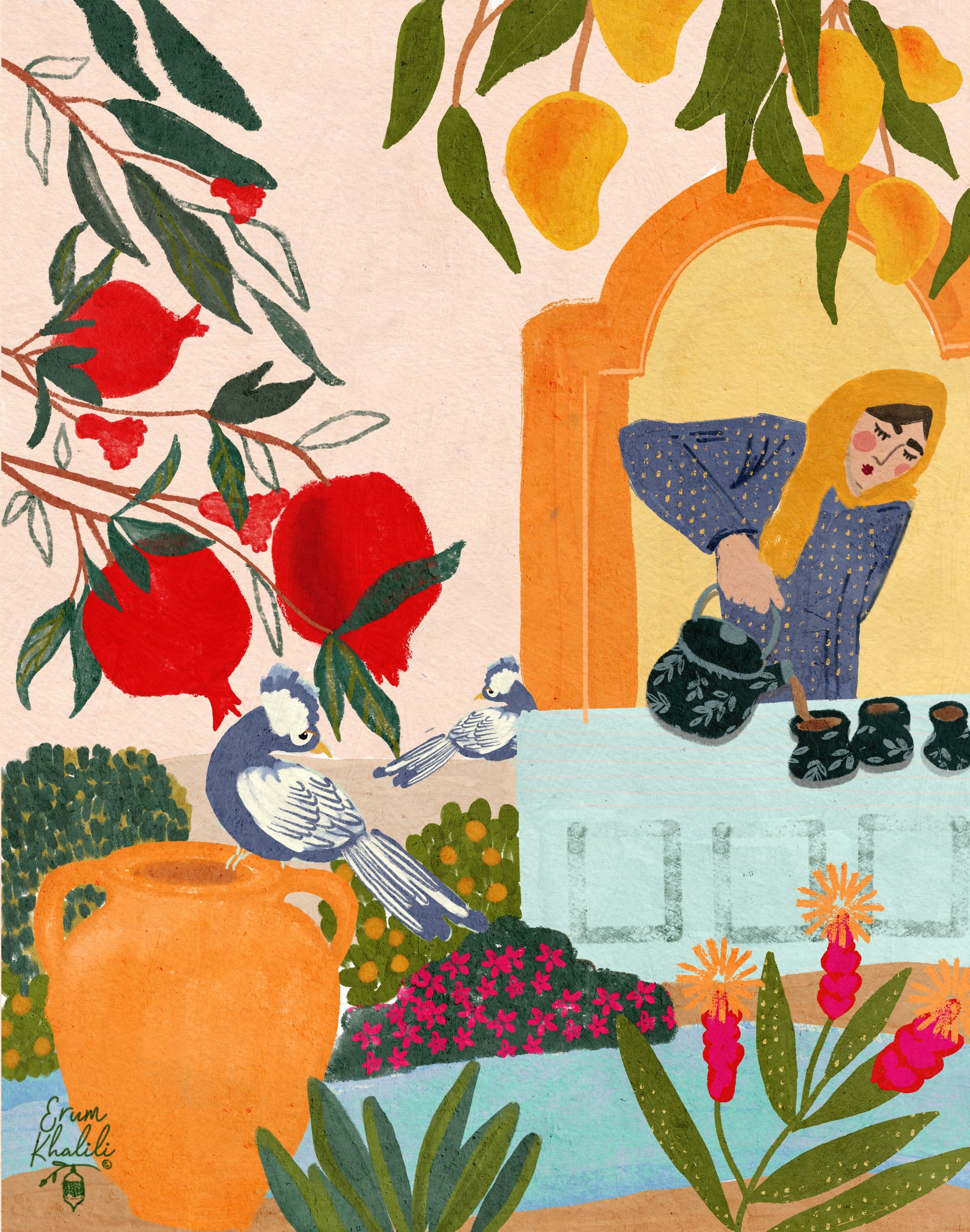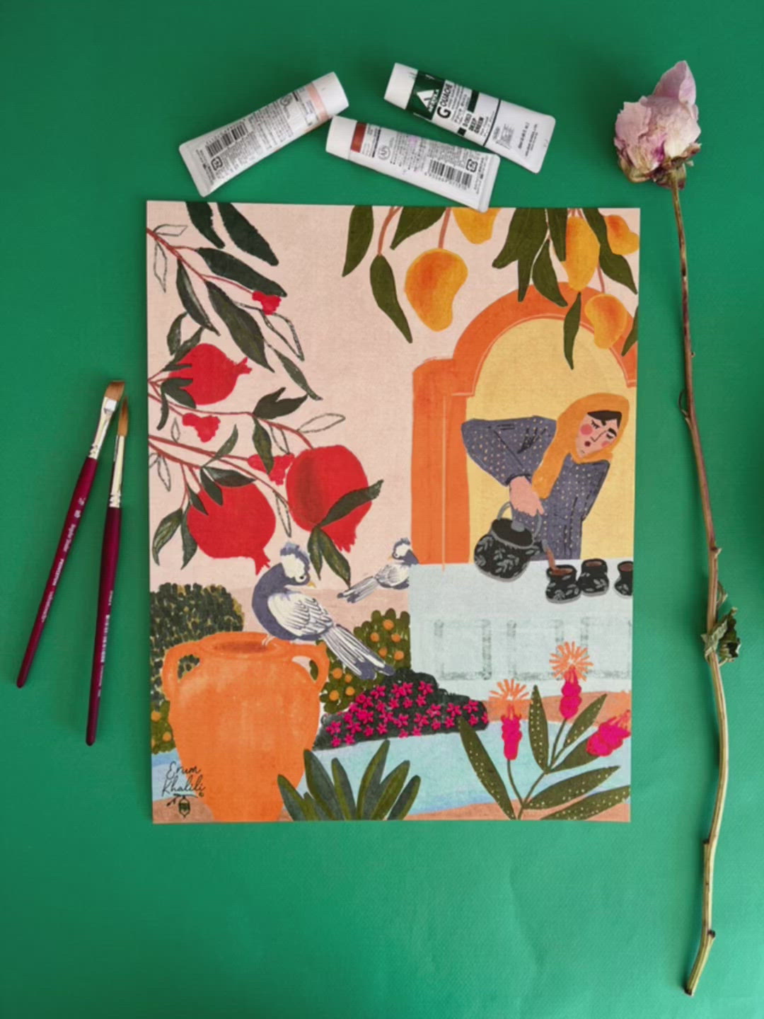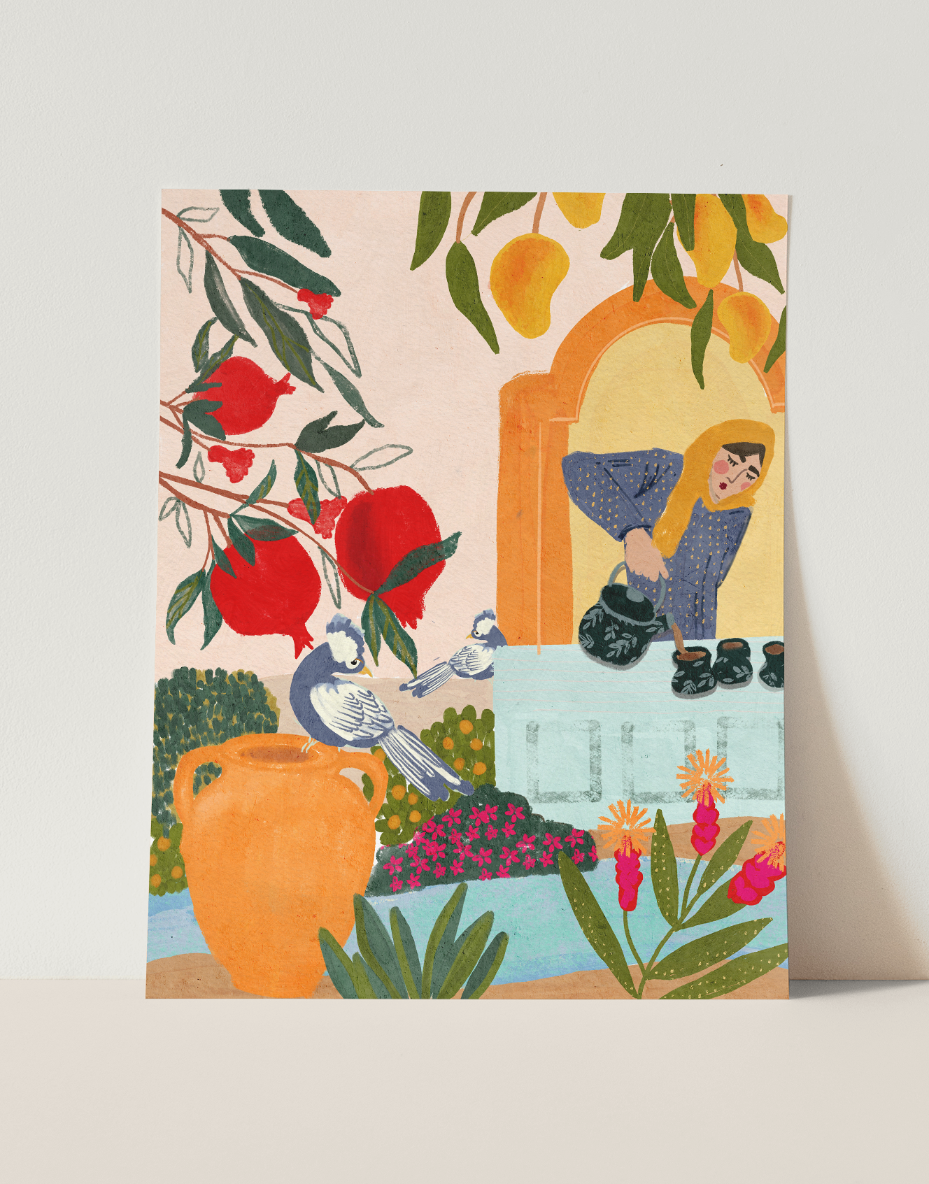 Premium Textured Paper Art Print | “Mama’s Tea Garden”