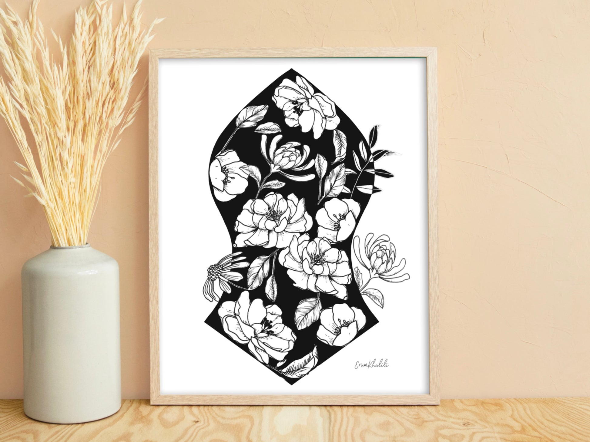 These display-quality art prints are illustrated by me, Erum Khalili. Create visual joy by hanging prints in any room. Frames are NOT included, but each print is standard sized so you can easily find one that works for your home aesthetic.