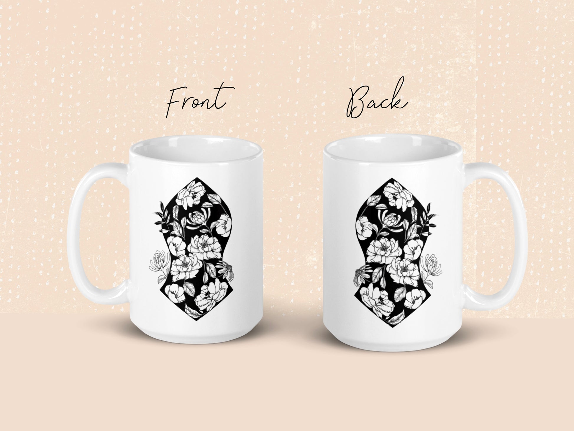 • 15 oz mug dimensions: 4.7″ (12 cm) in height, 3.35″ (8.5 cm) in diameter