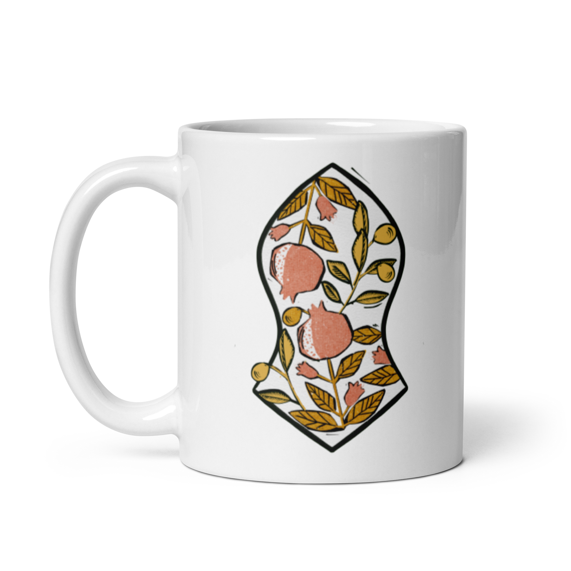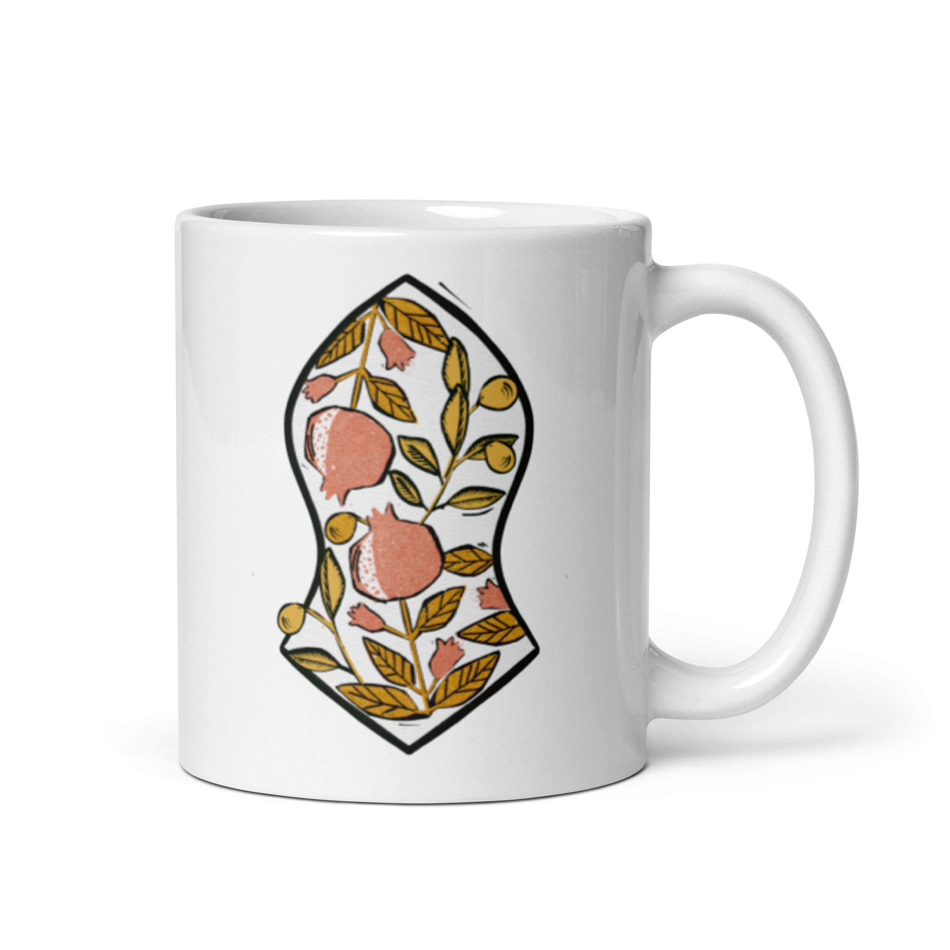 “The Blessed Sandals” artwork was designed by Erum Khalili. This floral piece was inspired by the shape of the prophet Muhammad PBUH’s Sandals. The floral artwork was first etched in a sketchbook with ink then transferred digitally. To see the entire process follow @erumkhalili on instagram.